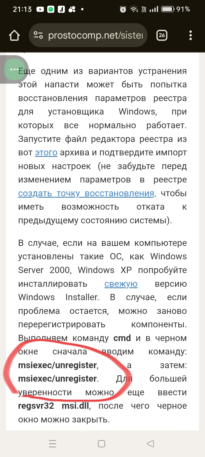 Выполняем команду cmd и в черном окне сначала вводим команду: msiexec/unregister, а затем: msiexec/unregister.